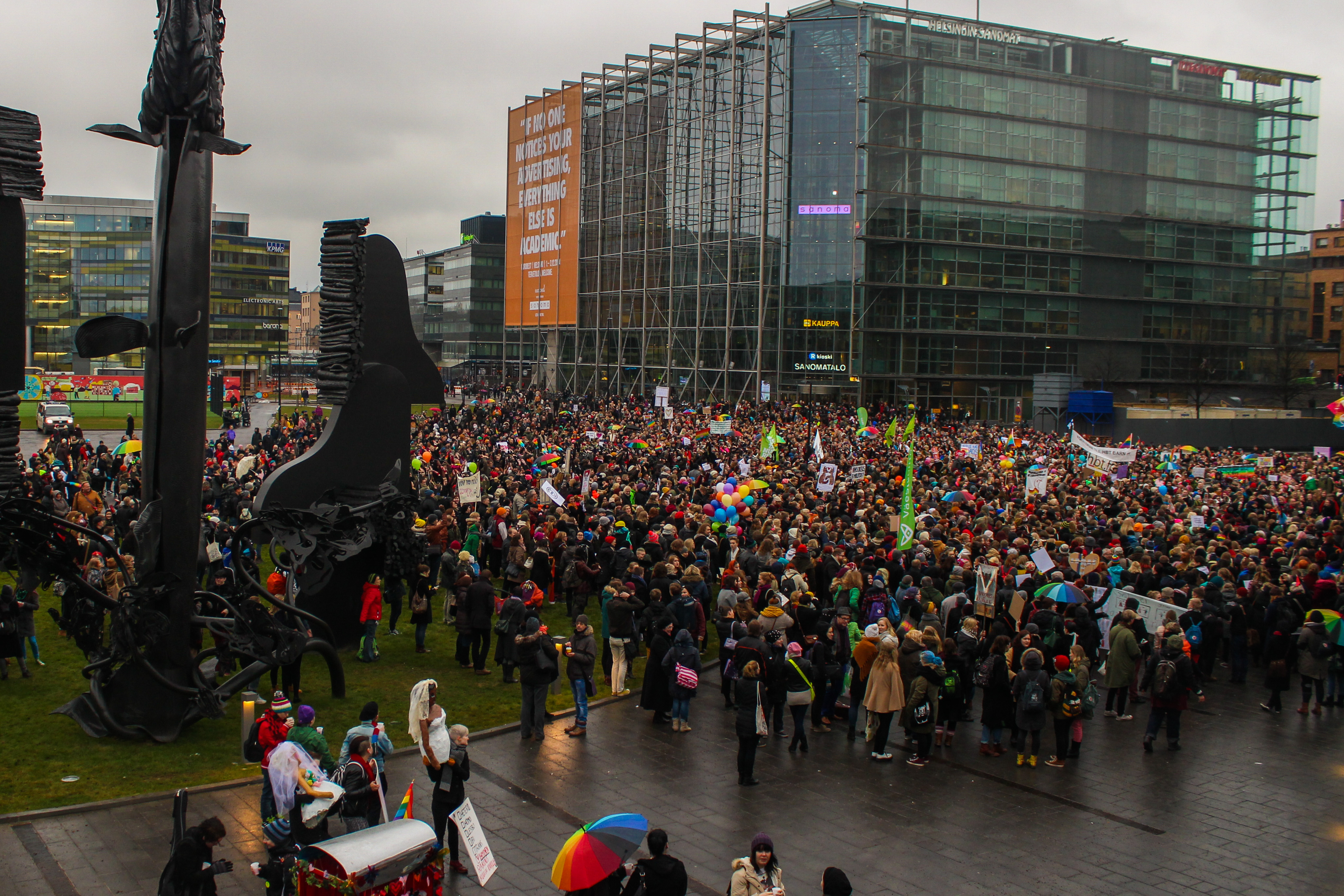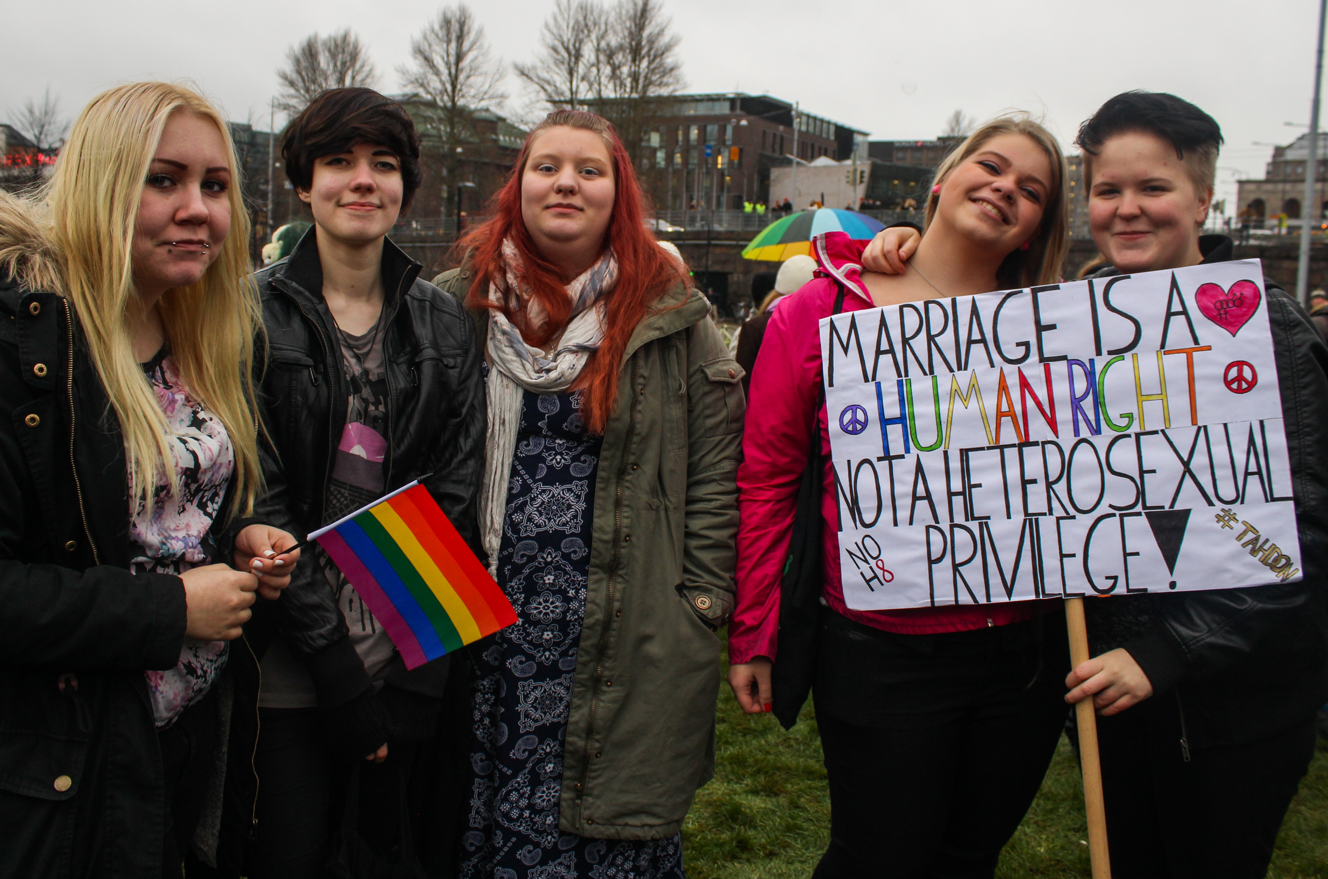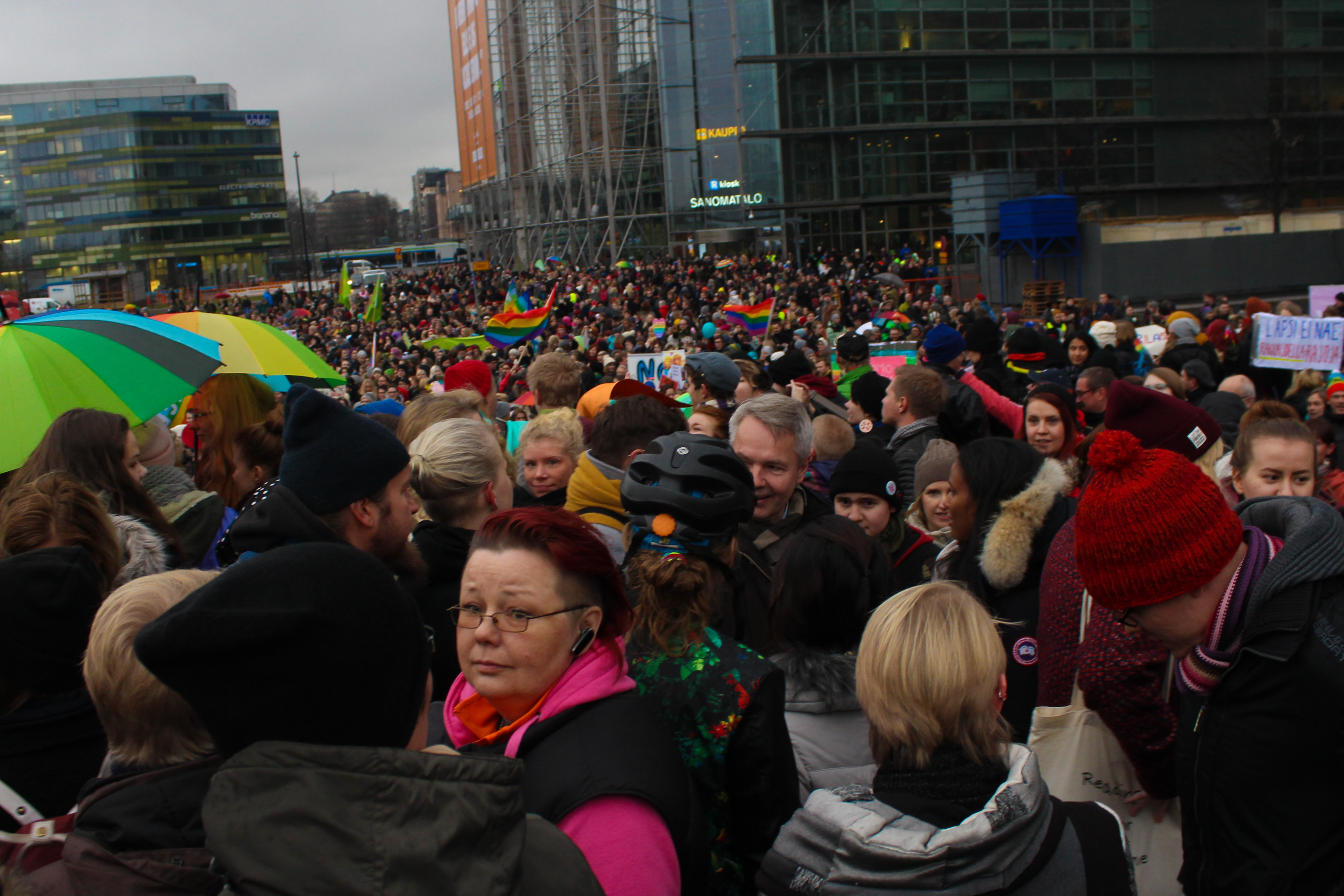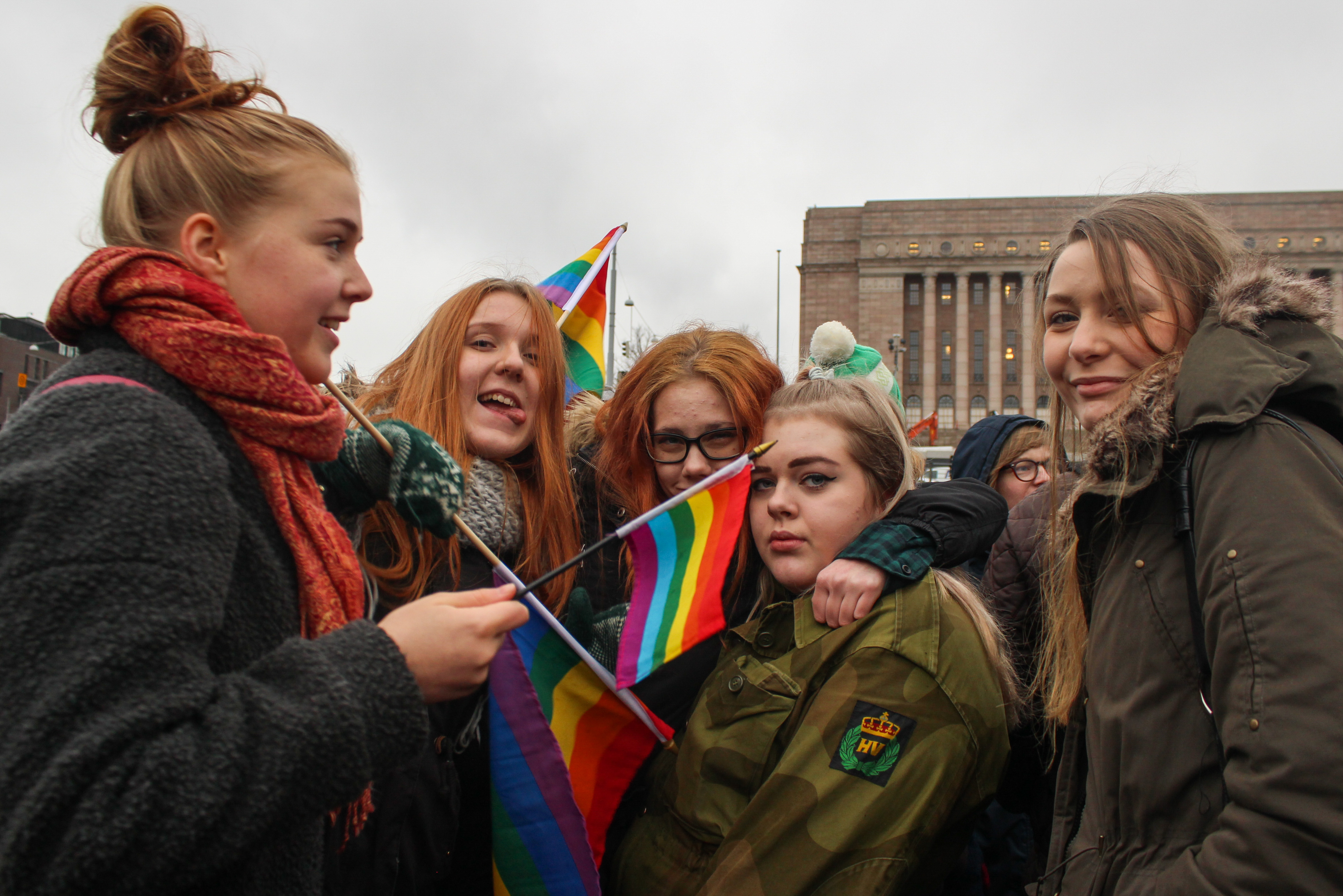 We made history today, when the Finnish parliament FINALLY voted for an equal marriage law. Me and like 20 of my friends skipped a few hours of school to demonstrate and show our love in front of the parliament, together with a few thousand others.