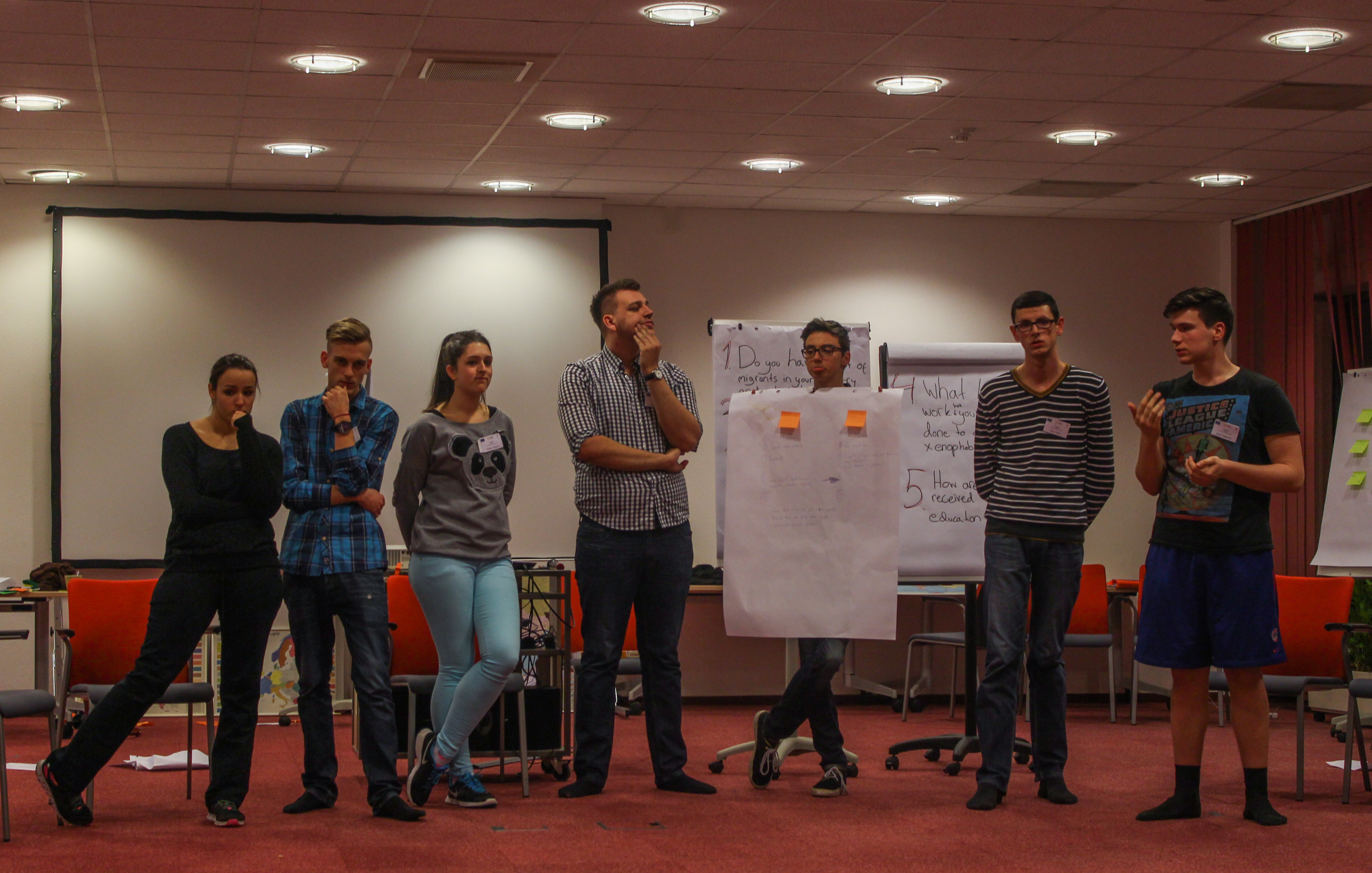 But what we’re doing here. Basically discussing topics that have something to do with or support the discussion of Xenophobia, in small groups and through projects. We have also had som lectures by guest speakers on everything from local projects (a Portuguise woman spoke about their work in the ghettos) and other organisations (a German guy on a catholic school-students union) and Human Rights (a woman from the Council of Europe). We have dicussions in plenary session but also in small groups. I think maybe we’ve been focusing too much on subjects that are important, but takes times from the real subject, which is Xenophobia in European classrooms and how to deport that. Anyway, we’ve had some really interesting discussions and I’ve learned a lot, especially about what they do in other countries and how other School-students unions work.