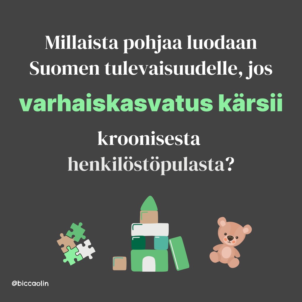 Varhaiskasvatuksessa luodaan pohja ihan koko Suomen tulevaisuuteen. Mutta millaista pohjaa luodaan, jos varhaiskasvatus kärsii kroonisesta henkilöstöpulasta, eikä ratkaisua näy?